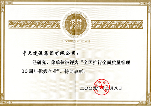 全国推行质量管理30周年优秀企业